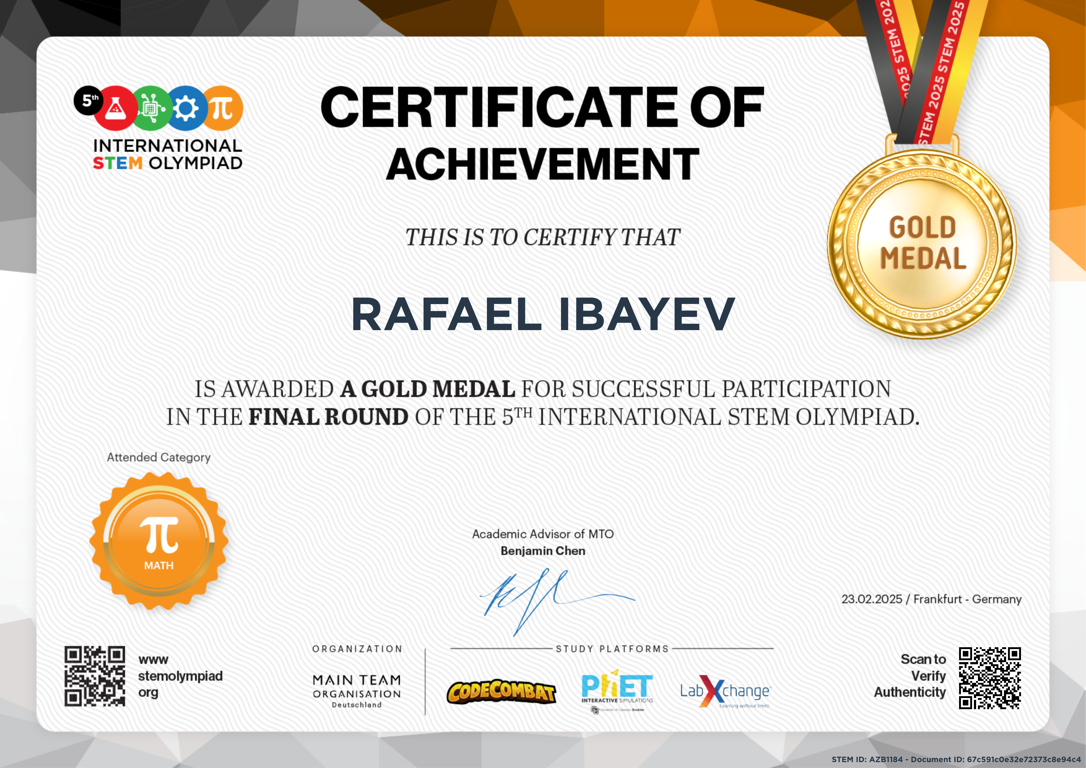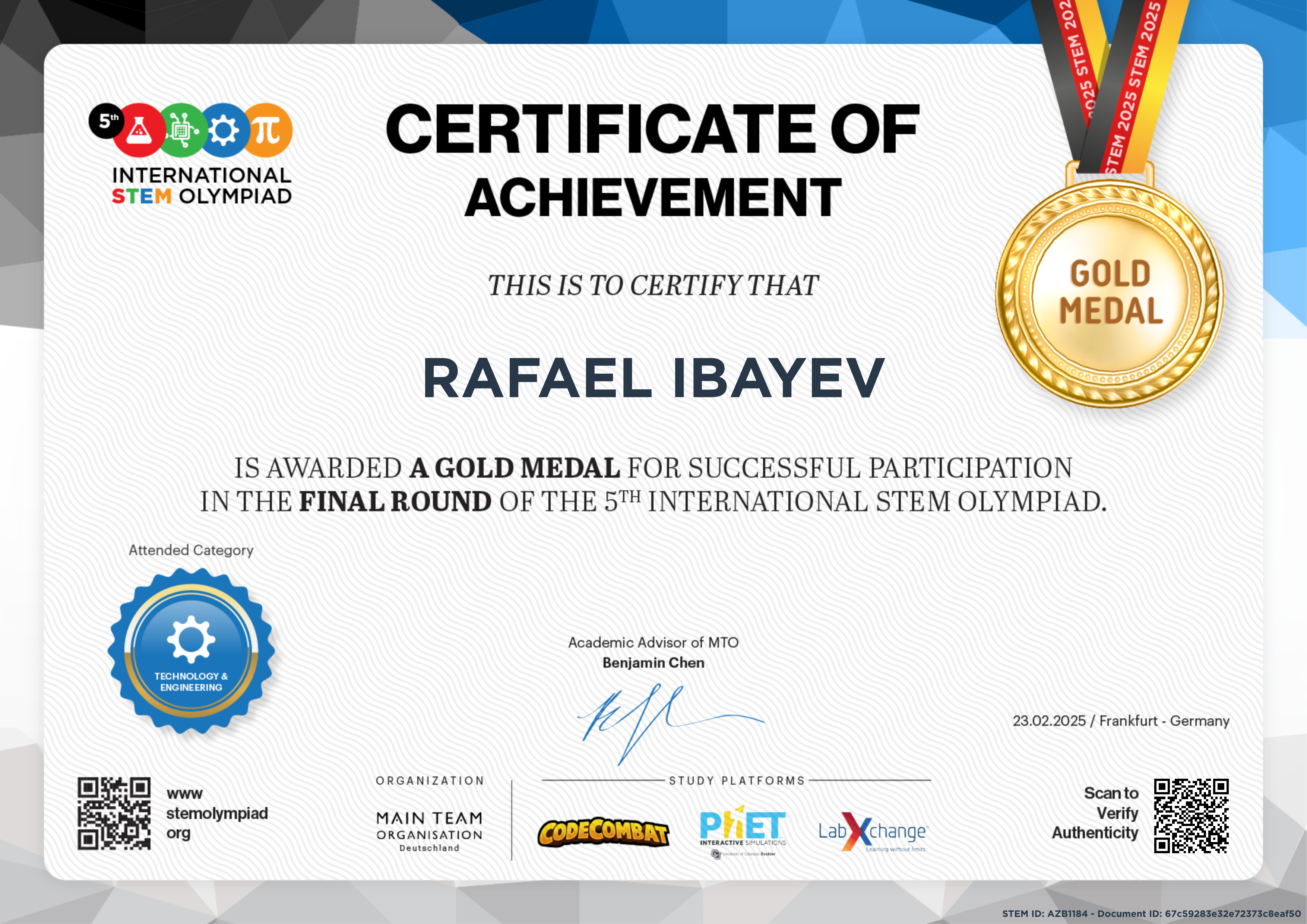As an International STEM Olympiad medalist, I focus on delivering high-performance code and innovative hardware designs.